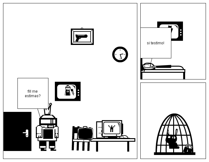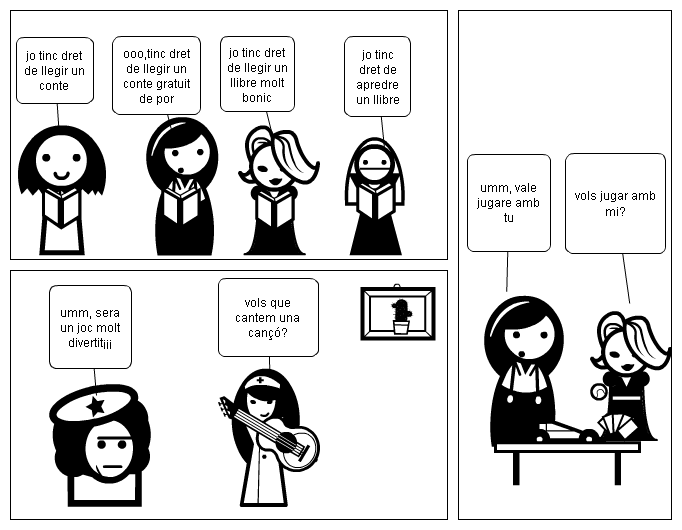 Cada grup de tres vinyetes està fet per una parella de diferent grup.